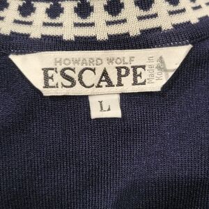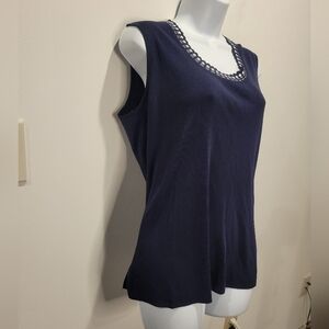 Howard Wolf Escape Size L Navy Ribbed Knit Shell Top