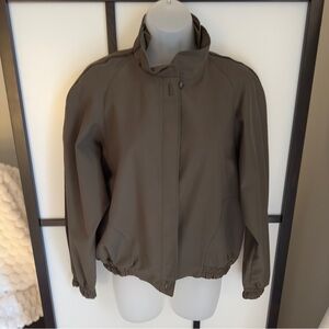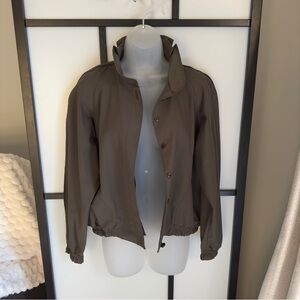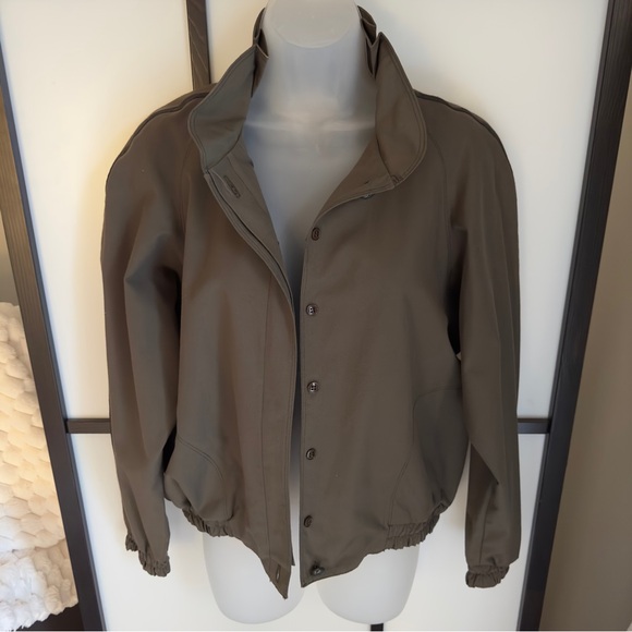 This green windbreaker is designed for comfort and style, featuring a relaxed fit and a versatile foldable collar. Ideal for breezy days, its lightweight construction ensures ease of movement while maintaining a chic appearance.