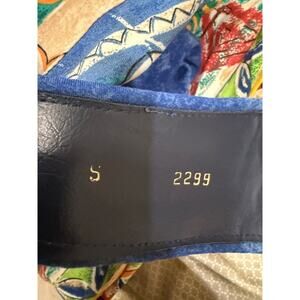Belt is structured, and has some bending to it. Marked Size Small I think? Studded accents and hook and loop closure.