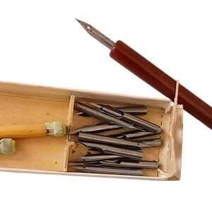 Howard Hunt CrowQuill Pens With Tips No 107 Original Box 11 Nibs Hawk Quill USA. Condition is pre-owned and vintage USA. Comes with 11 nibs. The box has some issues. Please see all photos for detailed condition