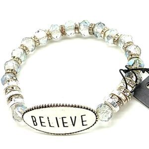 Howard's "Believe" Gray Bead Silver-tone Stretch Bracelet NWT