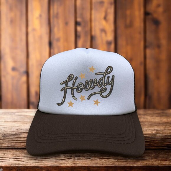 Howdy Cowboy Unisex Trucker Hat Brown Snapback Texas Roping Rodeo Western Cap