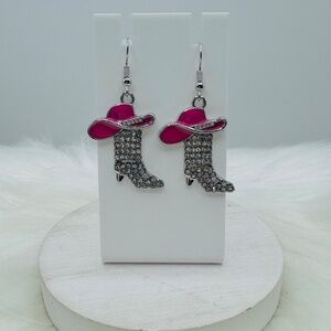 Howdy Rhinestone Boot Earrings- Pink Hat