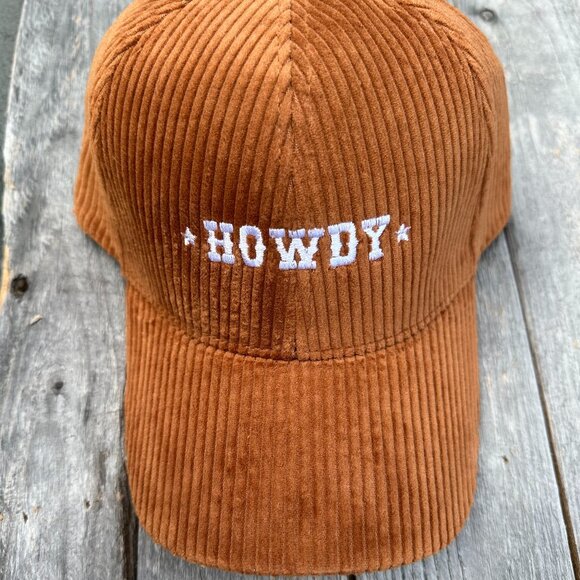 Cute corduroy cap with "Howdy" embordered on the front. Brand new