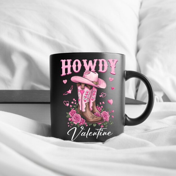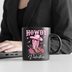 Celebrate Valentineās Day with a touch of Western charm! This āHowdy Valentineā mug features cowboy boots, a cowboy hat, flowers, and love hearts in a retro, cowgirl-inspired design. Perfect for those who love both country style and Valentineās Day!