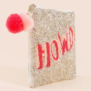 Howdy Western Cowgirl Silver Sparkle Beaded Pouch Wallet Bag Pink NEW Gift NWT