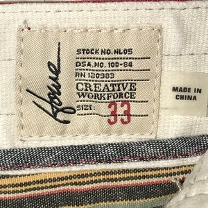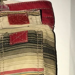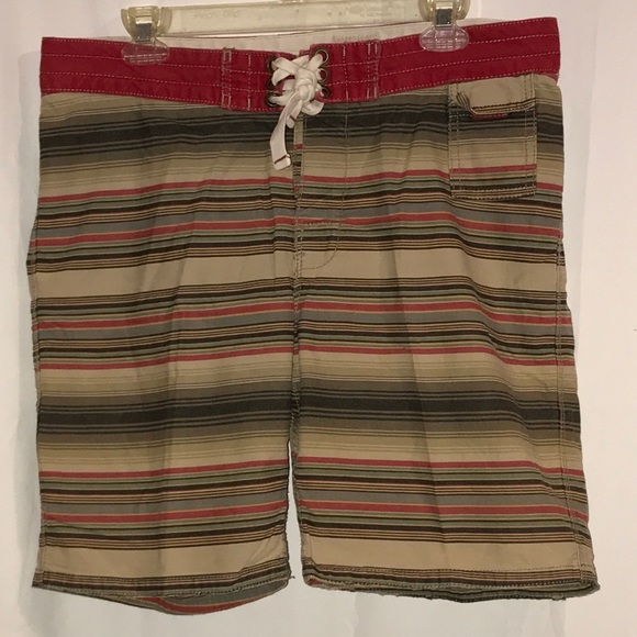 Stand out with this multi-colored board short/ walk short. Functional, stylish, and bold, it truly serves it’s purpose. It has a small Velcro pocket on the front, Velcro/ cinch fly combo, and rear Velcro pocket complete with 2 drain holes. There is slight fraying around the bottom which is hardly noticeable due to it’s style and color.