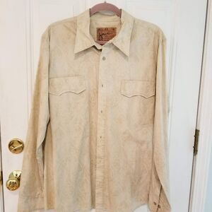 Howe Cream Tan Cotton Men's Embroidered Western Button Down Shirt XL