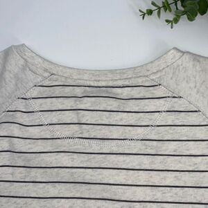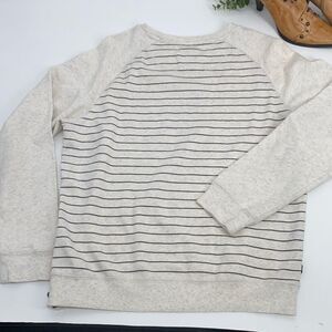 Howe No 65 Striped Crew Sweatshirt Cotton Side Zip Cream Grey M Unisex