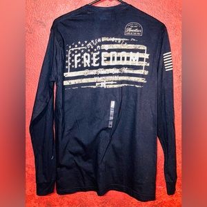 This long sleeve tee is black in color with crème graphics. It has a flag on the arm and American design! 2nd amendment tee! Comes in size XXL