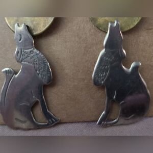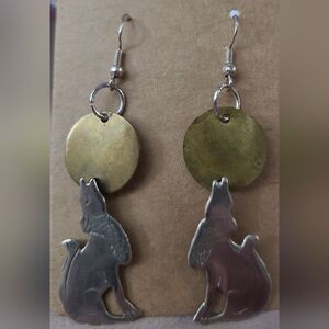 Howl at the Moon Gold and Silver Toned Earrings Fishhook Backs J1-25