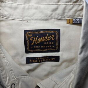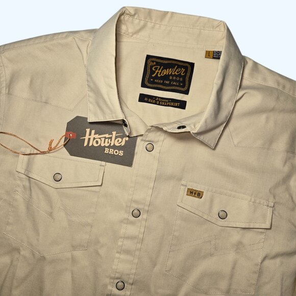 Keywords: Howler Bros, Howler Brothers, H Bar B Snapshirt, H Bar B, Short Sleeve, Snap Button, Button, Snap, Snap Shirt, Snapshirt, Beige, Bone, Mens, Large, NEW, NWT, Western.