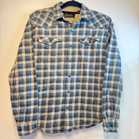 Howler Bros Heavy Flannel Shirt Plaid Stockman Metal Snaps Western Size S READ