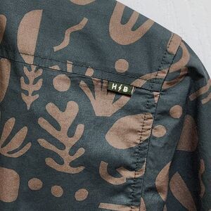 Howler Brothers Mansfield Shirt Mens S Tan Green Cotton Poly Distant Forms Dark Forest Print Short Sleeve Pocket Casual Travel Hawaiian Lightweight