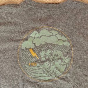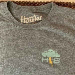 Description: Extra soft mens graphic t-shirt from Howler Bros featuring cloud with lightning bolt graphics on the chest and back.