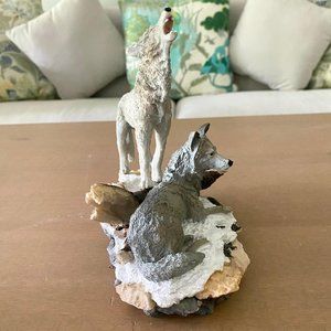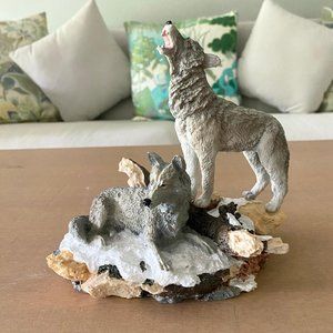 Howling And Sitting Wolves Figurine Sculpture