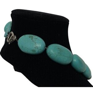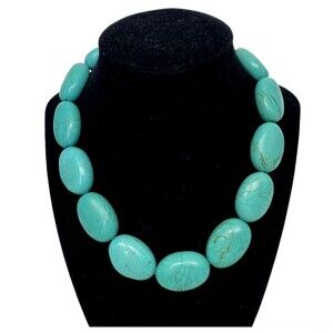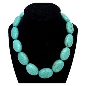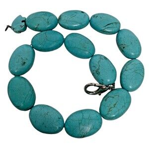 * Howlite Blue Turquoise Large Chunky Beads Oval Necklace w/ Carved Animal Totem.