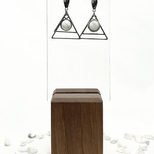 Howlite handmade dangle earrings, stainless steel , lightweight, unique geometric shape, comfortable, genuine stones NOT dyed, do not tarnish, silicone stoppers included.