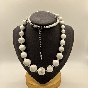 Genuine Howlite Gemstone Graduated Necklace (Sizes used were 14mm all the way down to 4mm)