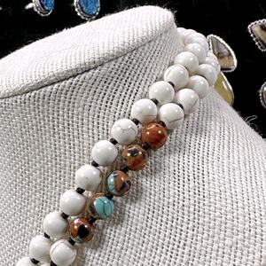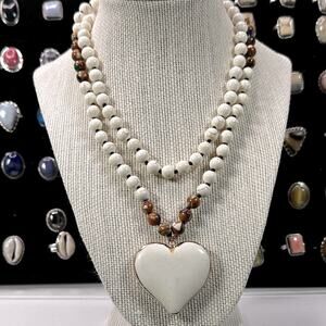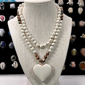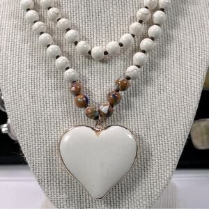 Howlite beaded white heart necklace hand knotted approximately 30”