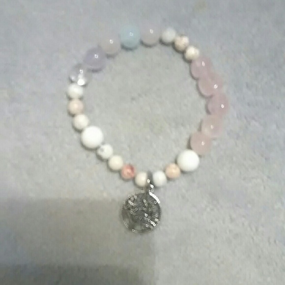 All natural howlite rose quartz and multiple other precious gemstones on an adorable stretchy bracelet with a charm (optional) all handmade