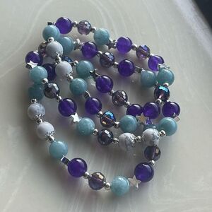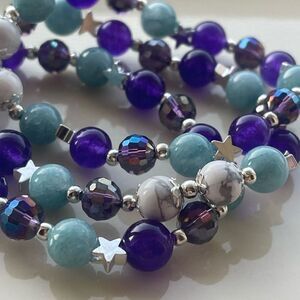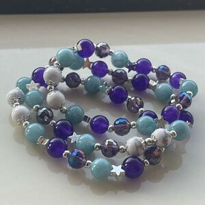 Howlite purple chalcedony aquamarine star ONE stretch bracelet NEW handmade silver tone