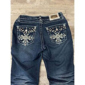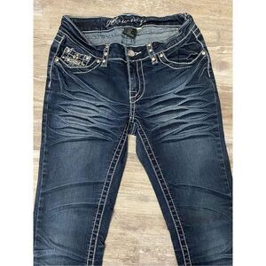 Howmy Jeans Skinny Stretch Whiskered Dark Wash Embellished Women’s Junior’s Sz 3