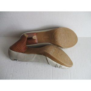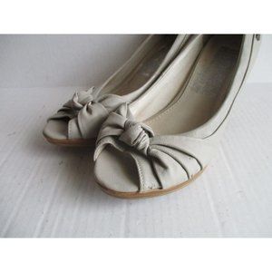 *HoyVoy Beige Taupe Leather Pumps Peep Toe Twisted Knot Vamp Stacked Heel - EU40