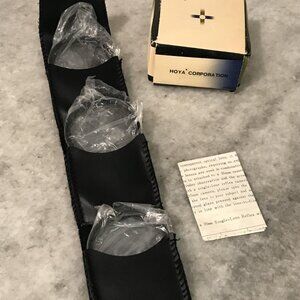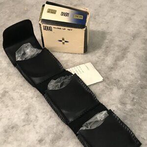 Includes: Three close-up lenses in individual plastic sleeves, black HOYA stitched pouch, original box, instruction leaflet