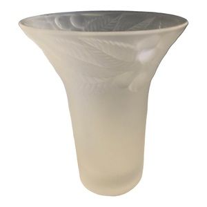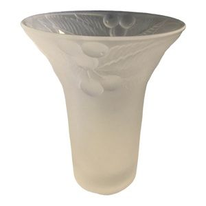 Frosted Glass CrystalVase with Cherries and Leaves etched around the top. Used in good condition. No chips/cracks/crazing. Measures 6” tall. Made by Nova Corporation in Japan. Pet/smoke free home.