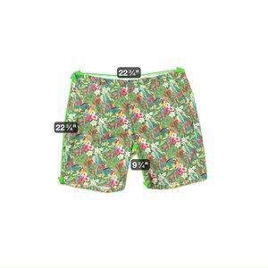 tropical shorts, summer wear, parrot print, floral shorts, Hreski shorts, men's clothing, resort wear, casual shorts, lightweight fabric, stretchable shorts, green shorts, vacation wear, size 46 shorts