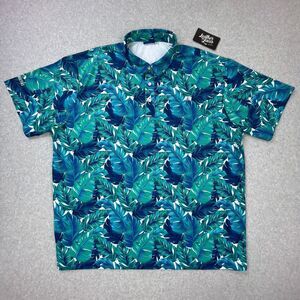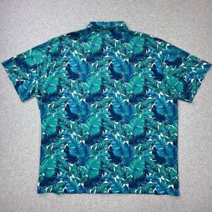 Hreski Performance Golf Polo Shirt Mens 2XL Blue Green Monstera Palm Leaves Soft