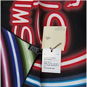 Hermès limited edition Carré 70 by Jean-Louis Clerc featuring a black ground with multicolor neon ring motifs. Original tags attached.