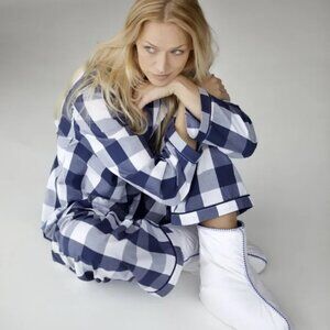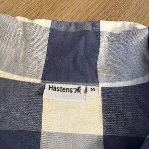 Hästens Blue Check Pajama Shirt TOP ONLY M medium plaid button up Hastens