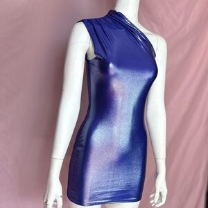 New with tags blue metallic slinky one shoulder bodycon dress PrettyLittleThing dresses figure-hugging fit sexy dress night out dress party dress bodycon dresses metallic purple one-shoulder dresses