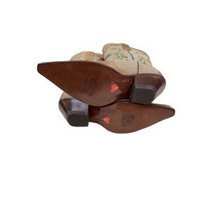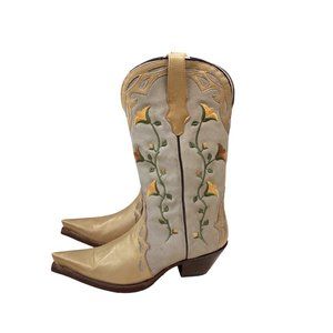 Hu Duel Women's Western Embroidered Heeled Boots - Gold and Cream
