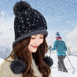 ✨ Huamulan Ear Flaps Sherpa Ski Women Black Peruvian Beanie Snow Pom Pom Hats