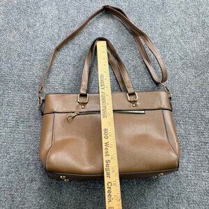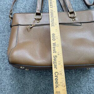 Huanying Shiyong Deligaopiju Brown Leather Tote Bag Zipper Closure Dual Handles