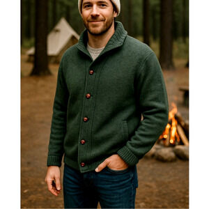 Huckberry L Barbour Chelsea WOOL Cardigan Shall Collar Grandpa Sweater Green