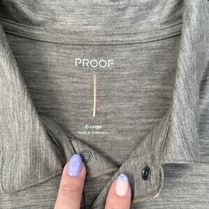 Huckberry Proof Polo Shirt Mens XL heathered Brown 72 Hour Merino Wool Blend Golf Stretch snaps