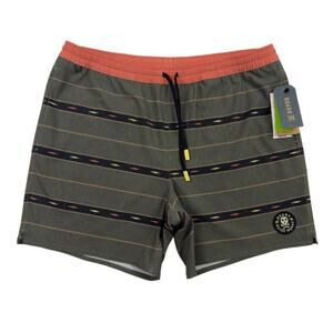 Huckberry Roark Shorey 16” Boardshorts Men’s L Green Stripe Hemp Blend Swim Trunks NWT. Condition is New with Tags.