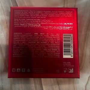 Huda Beauty Ruby Obsessions eyeshadow palette in vibrant red and gold.