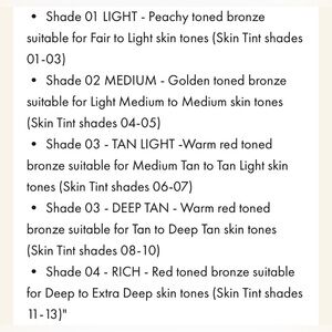 Color: 03 Tan Light (warm toned bronze suitable for medium tan to tan light skin tones)
