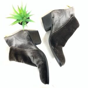 This directional ankle boot is crafted in a soft velvet. this has then been brushed by hand to create a distressed and vintage look, making every pair unique. sat on a slight heel, this style is perfect for jeans and dresses!