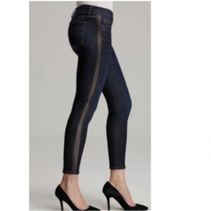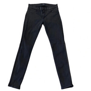 Hudson Ava Super Skinny Black Wash Jeans With Lambs Leather Tuxedo Stripe Sz. 27