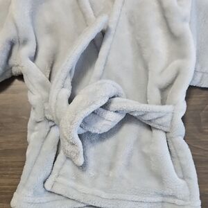 Adorable gray fuzzy robe from Hudson Baby (HB brand). Made from soft 100% polyester for ultimate coziness. Features a hood designed like a sweet elephant with little ears and a cute pink bow on top. Perfect for bath time, photos, or cuddly lounging.