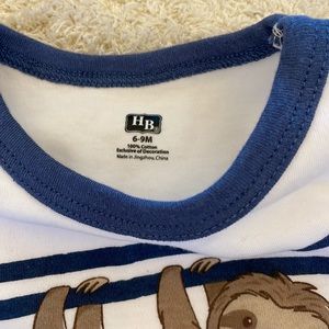 Adorable sloth themed onesie and shorts from HB. Great condition. Only wore once or twice. Like new.