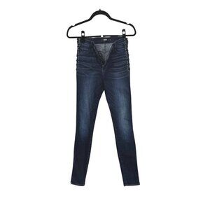 Hudson Dark Wash Barbara Hip Lace Up Detail Tonal Topstitching Flat Front Classic Five Pocket Styling Super Skinny Fit Jeans Stretch Ankle Denim Size 24 - Excellent condition.