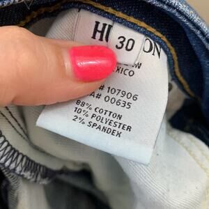 Size 30. 88% Cotton 10% Polyester 2% Spandex. Inseam 27 1/2 inches. Waist 34 inches. Rise 9 inches. Great condition!