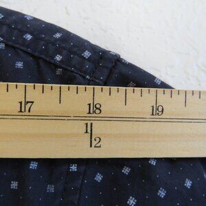 Pre-Owned Condition! 100% Cotton. Handsome Black with White BOHO Print Design Button Down Single Chest Pocket Shirt with Dark Plum Color Buttons.